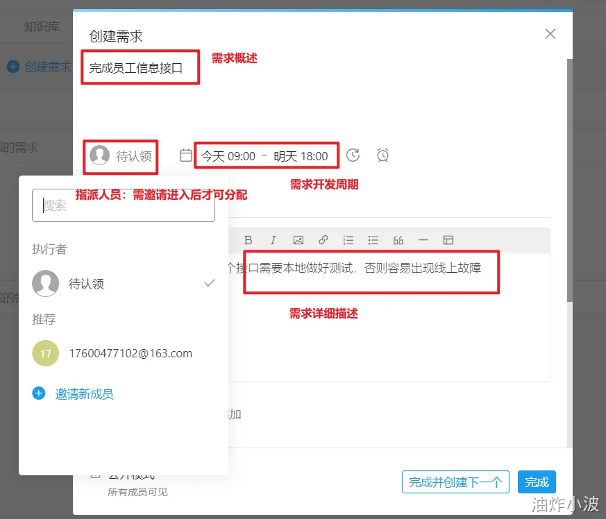 (3)创建需求,邀请成员