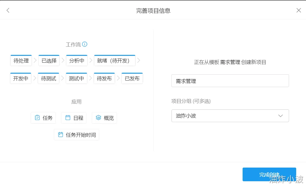 (2)弹窗填写关键信息,无项目分组就直接创建