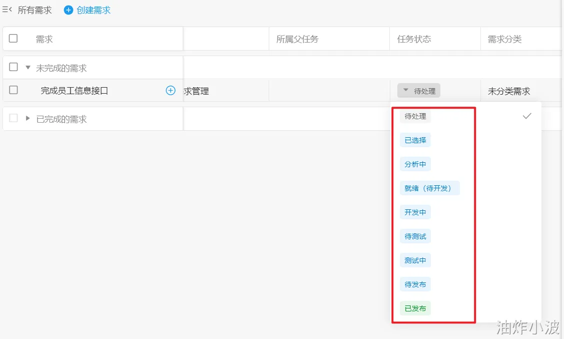 (1)点击需求管理,如版本更新不再展示,就直接搜索