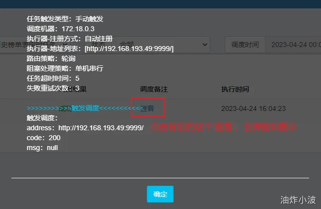 在弹窗中,可以增加执行参数,也可以指定固定某台ip(debug调试就可以写自己本地ip),这里我们直接点击保存执行