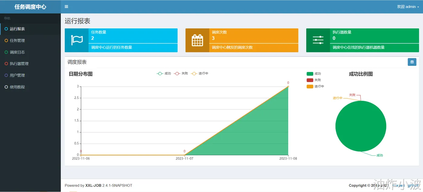 - xxl_job_log_report:调度日志报表:用户存储XXL-JOB任务调度日志的报表,调度中心报表功能页面会用到;