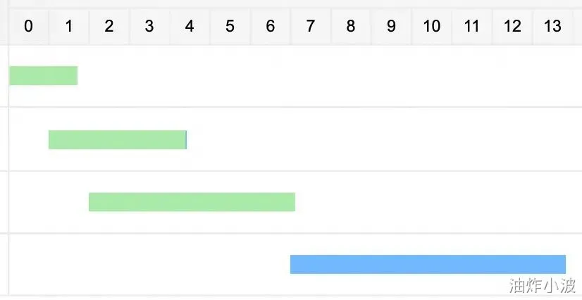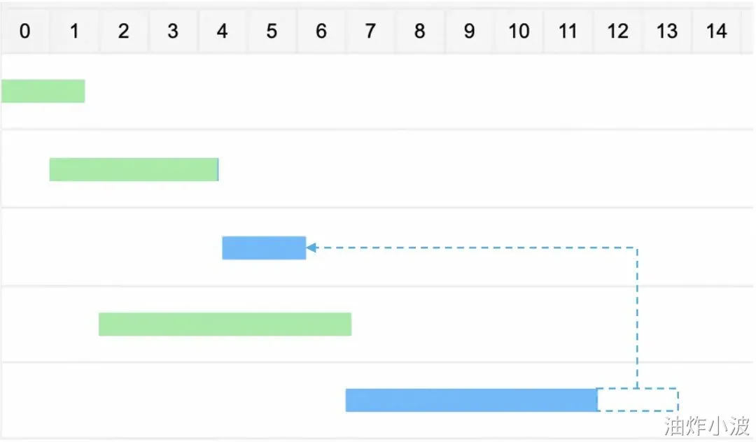 直接引用视图:视图中的计算逻辑堆积到大宽表任务中,增加了运行时间(绿色:上游任务;蓝色:大宽表慢任务)。