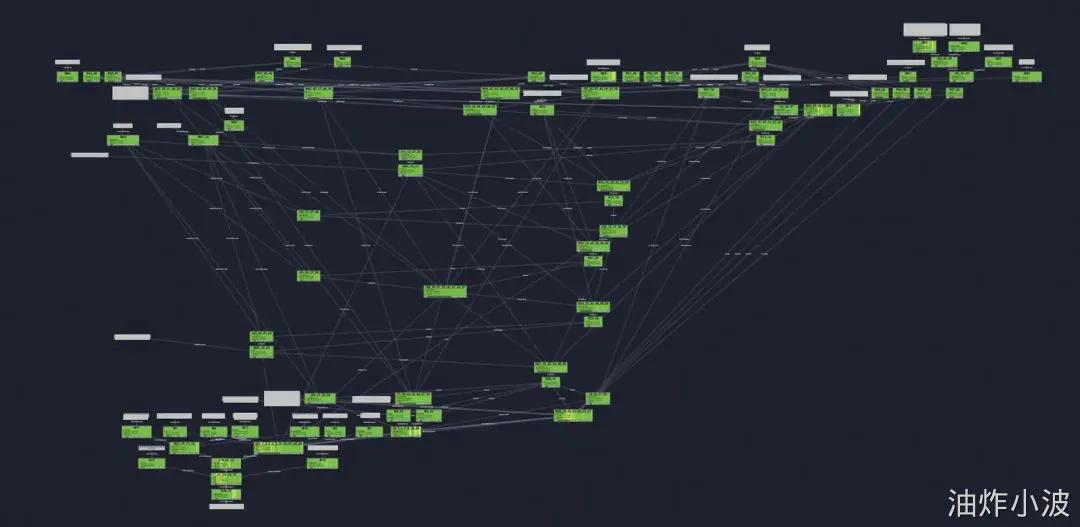 想从DAG图里梳理清楚数据加工链路,已经是不现实的了,只能回到SQL代码里,看看实现了哪些逻辑,再来寻找切入点。我们忽略掉代码中关于指标加工/格式转化/字段拼接等部分,只看数据表的结构加工和数据流向,大概可以梳理出这样一条主干链路。