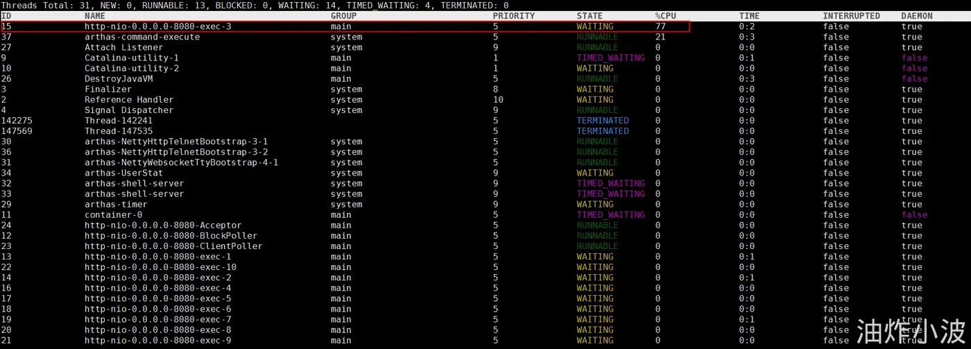 thread指令查最高占用的线程