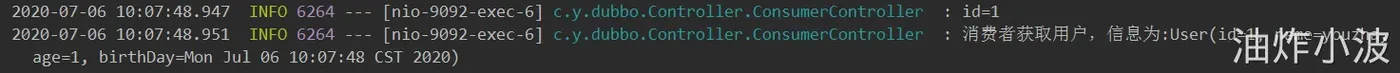 消费者获取用户,信息为:user(id-l,name-youzha,