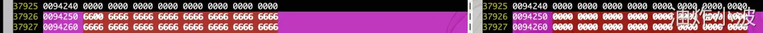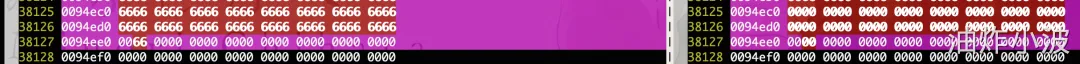 计算错误字段的开始位置和结束位置:mismatch start = 0x94250 = 606800,mismatch end = 0x94ee0 + 2 = 610018,对一个 4K 页整除可以发现错误段正好位于一个 page 内。
