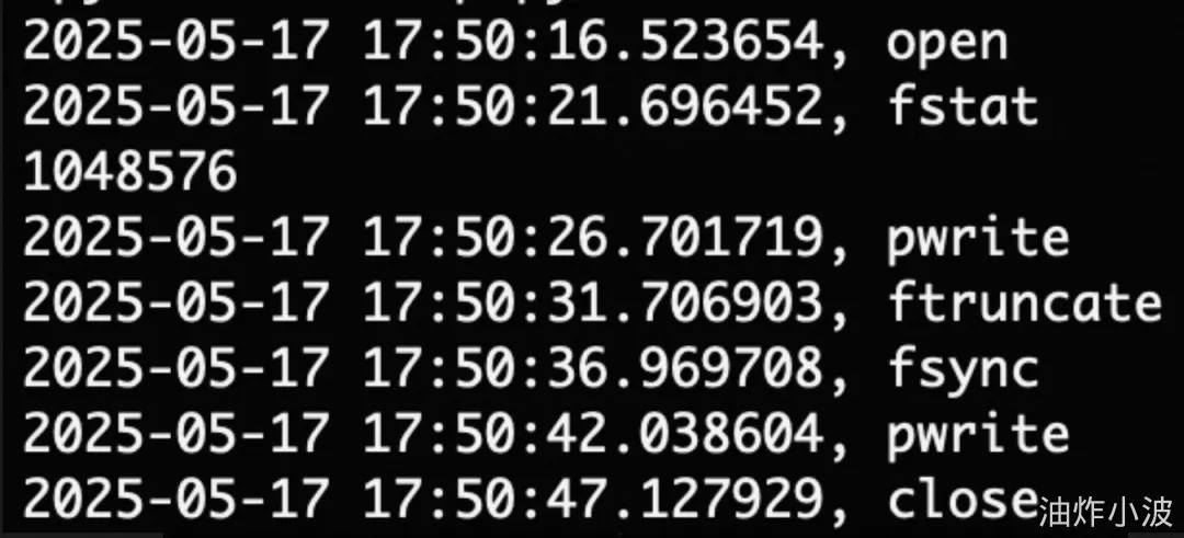 ftruncate(31s)或fsync(36s)触发 write 请求时才提交至文件系统。 - 差异点:用户需注意