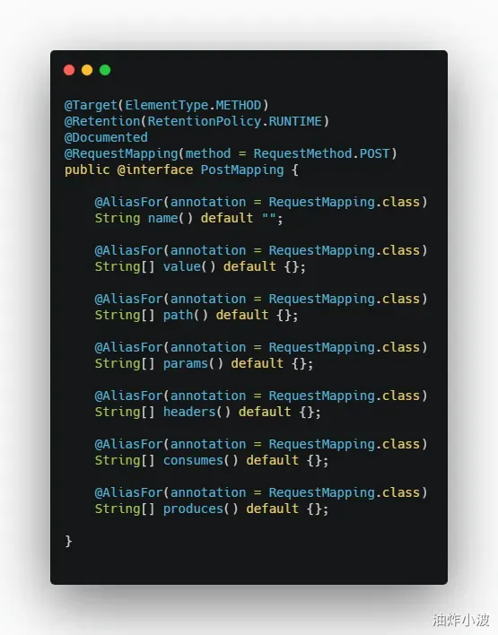 ●可以定义多个方法,每个方法在使用时参照下面的Controller使用即可,实际就是类似于@PostMapping这样的注解中使用过的value,method,produces等,如下:
