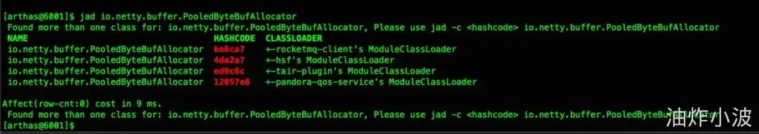 这个应用是饿了么弹内的应用,io.netty.buffer.PooledByteBufAllocator,有7个ClassLoader加载了它,分别: