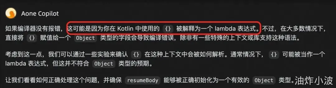 首先肯定本意是想将resumeBody置空,误用了{},{}在kotlin中被编译器解释为一个lambda表达式。
