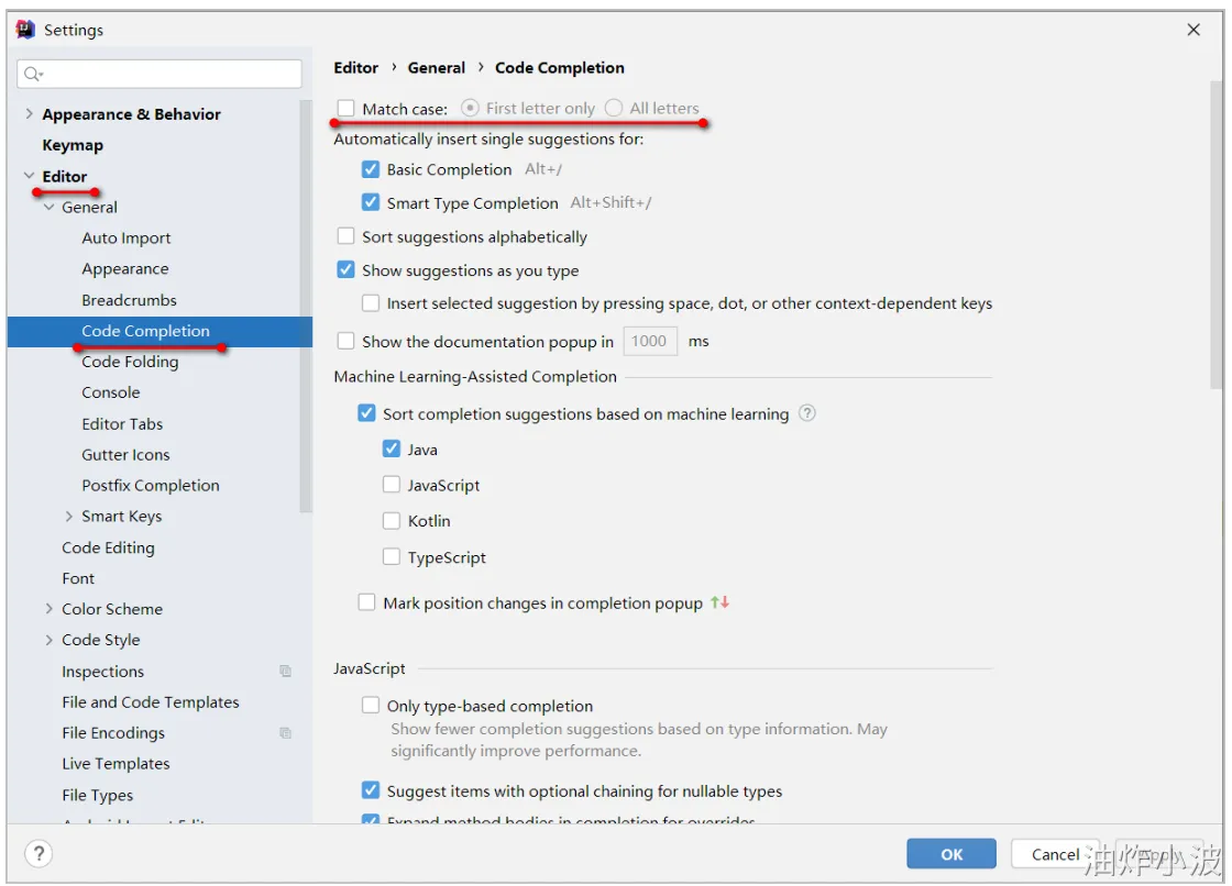 IDEA代码提示默认是区分大小写的,设置为提示忽略大小写,编译我们后期的开发