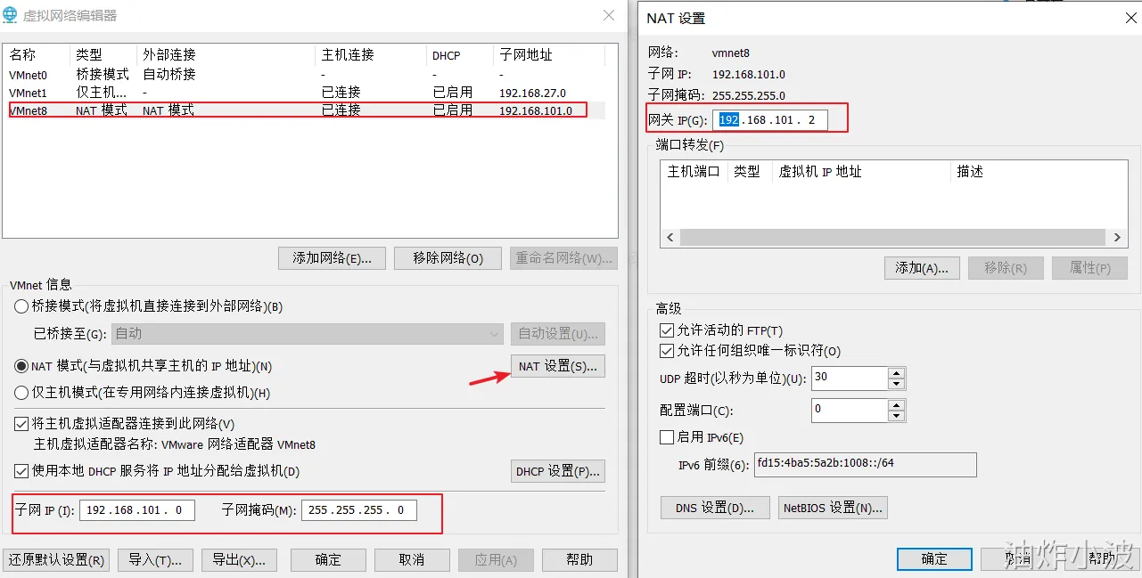 设置子网IP:192.168.101.0,子网掩码:255.255.255.0。