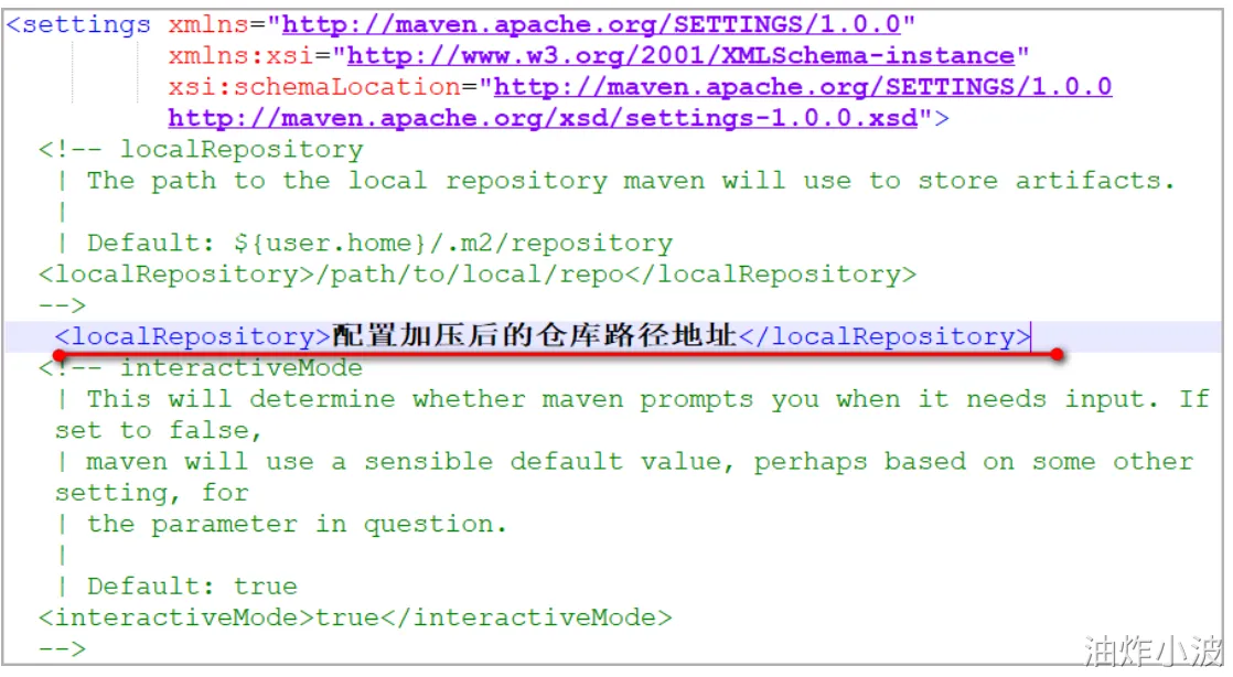 2、在Maven的conf目录中setting.xml文件中配置本地仓库的地址。