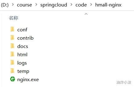 接下来运行前端,前端工程通过nginx运行,找到课程资料下“hmall-nginx”目录将其拷贝到代码目录下(将其复制到一个非中文不包含特殊字符的目录下):
