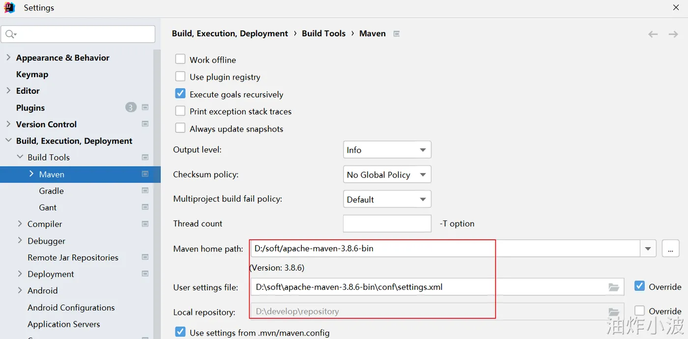 配置maven安装目录、setting.xml及本地仓库的位置。