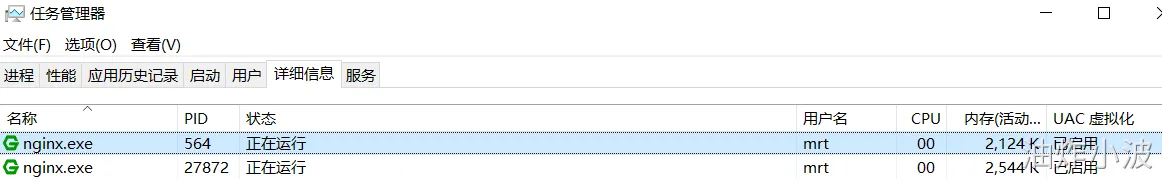 通过任务管理器可以查看到nginx进程说明nginx启动成功