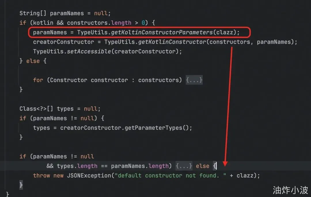 FastJson自然无法正确解析这样的一个Object字段,而最令人细思极恐的问题是 解析这个对象报了错,却把kotlin_error置为true,而后有没有地方将其复原为false,导致所有的反序列化都进到这里,返回不正确的结果,错误结果被外层拦截抛出default constructor not found异常。这个影响面是巨大的,会导致整个工程崩溃。