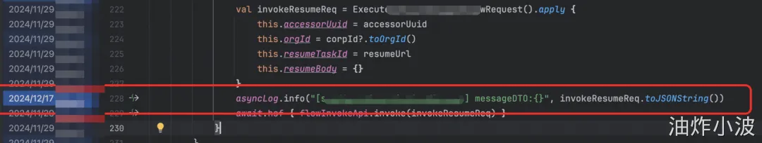 这段日志代码是12-17添加的,时间看了下还挺符合。再看resumeBody其实是个Java类的一个object类型字段,kotlin中这样对其赋值,编译器倒也没报错。