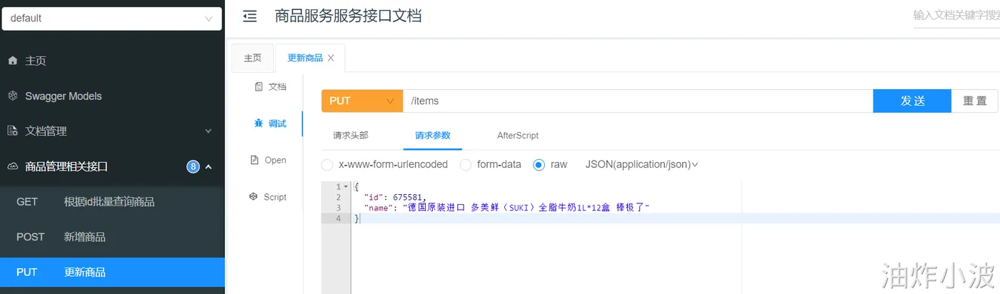 - 在商品的CRUD方法中仍然需要加入向MQ发送消息的代码,如下:
