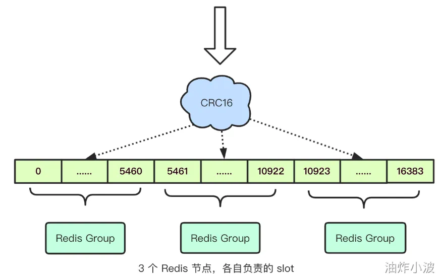 当我们读写数据时,Redis基于CRC16 算法对key做hash运算,得到的结果与16384取余,就计算出了这个key的slot值。然后到slot所在的Redis节点执行读写操作。