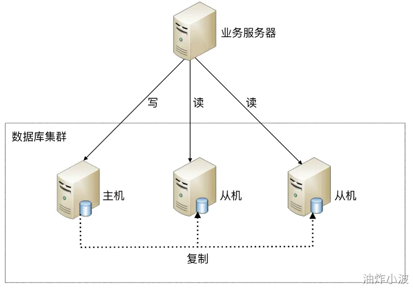 首先我们要知道,平时我们在学习时只用MySQL单机即可,但是生产环境中MySQL部署为主从集群模式,MySQL主从集群由MySQL主服务器(master)和MySQL从服务器(slave)组成,主数据库提供写服务,从数据库提供读服务,主从之间进行数据复制保证数据同步,如下图: