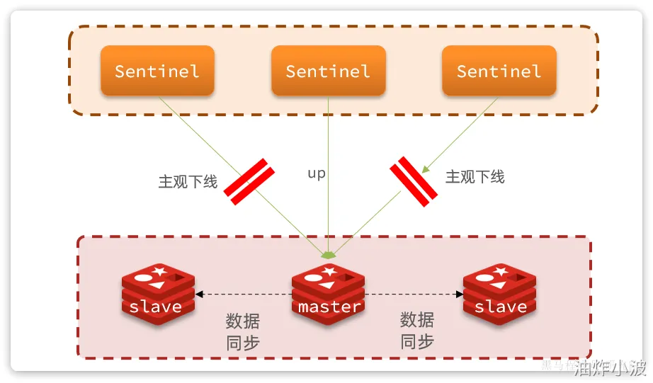 - master之间通过ping监测彼此健康状态 ,类似哨兵作用