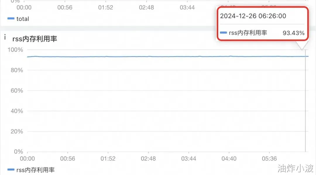 明明是限制的堆外1G,怎么超过了这么多。再多观察一会,发现它还会继续缓慢上涨的,最高达到接近1.5GB。这就和最开始查看Java进程的RSS占用对上了。