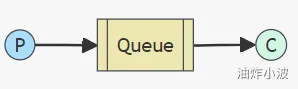 这种方式实现最基本的异步通信,一个生产者,一个队列,一个消费者,生产者将消息发到队列,消费者从队列接收消息。