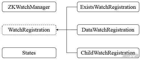 - WatchRegistration,抽象类,用作watch注册。
