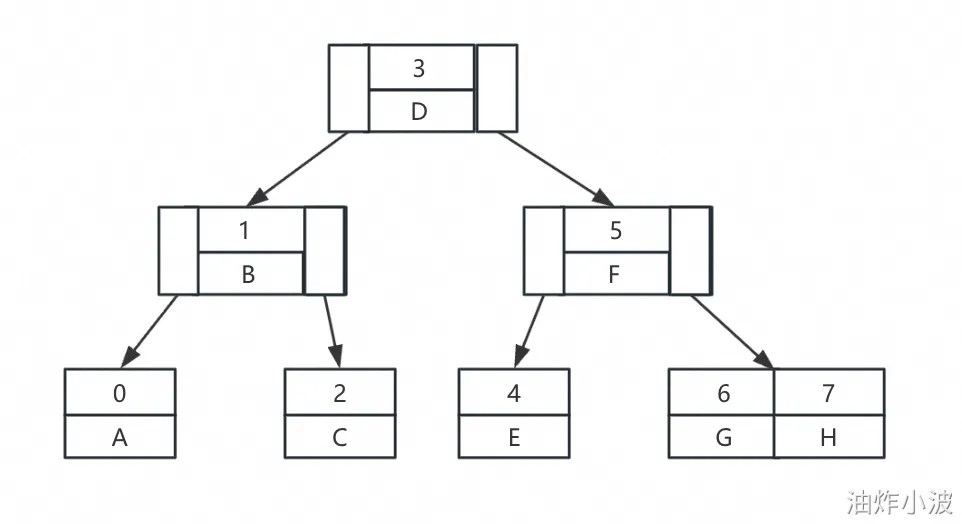 B+Tree是一个多叉树,即子节点的数量可以大于2,与之相对的红黑树最多只有2个子节点。B+Tree中一个节点的子节点数目的最大值就是B+Tree的阶,比如8阶B+Tree最多有8个子节点。B+Tree通过增加子节点的数量可以大幅增加单层B+Tree的节点数(比如3层8阶的B+Tree 第三层的节点数等于8*8*8=252,3层的红黑树第三层的节点数等于2*2*2=8),从而大幅降低整体的树高度,减少查询过程中的磁盘访问,提升读写效率,比如图中树的高度是3,从根节点到叶子节点只需要3次磁盘访问即可返回。