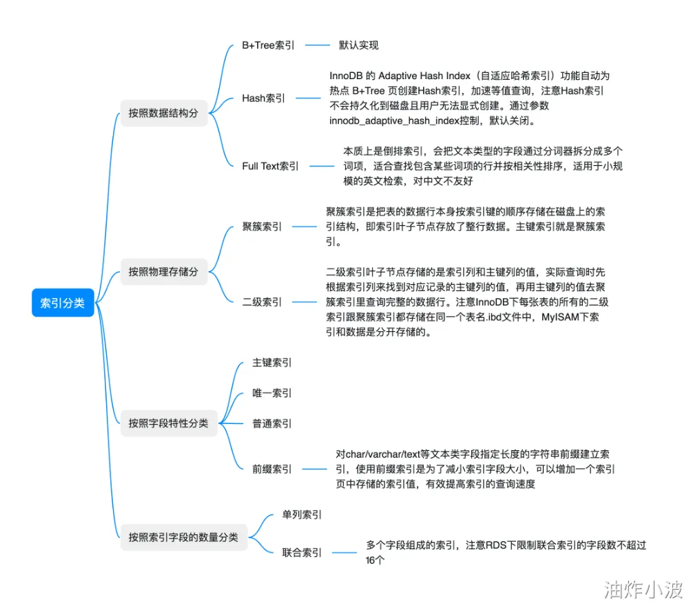 3. 对于二级索引,索引长度不超过50,单表控制在1000w行以内,B+Tree的高度不超过3。