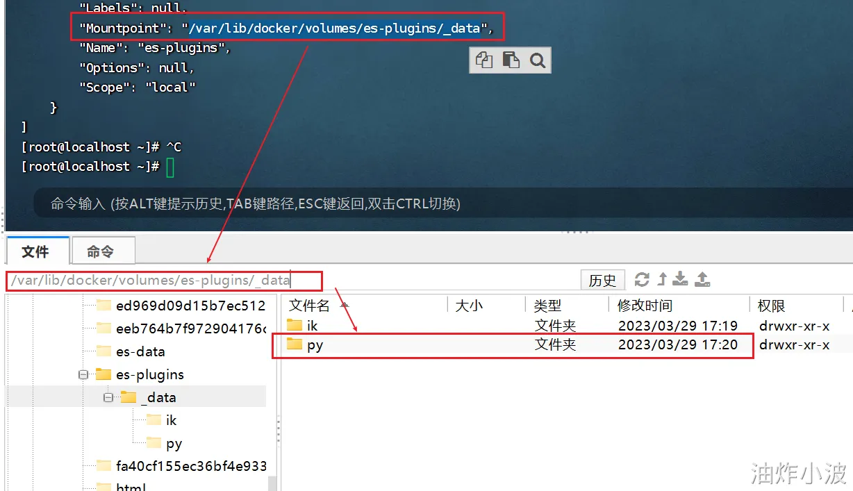 - 执行下述指令,会发现存储路径: "Mountpoint": "/var/lib/docker/volumes/es-plugins/_data"