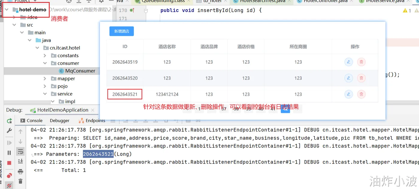 在hotel-demo中的cn.itcast.hotel.mq包新增一个类: