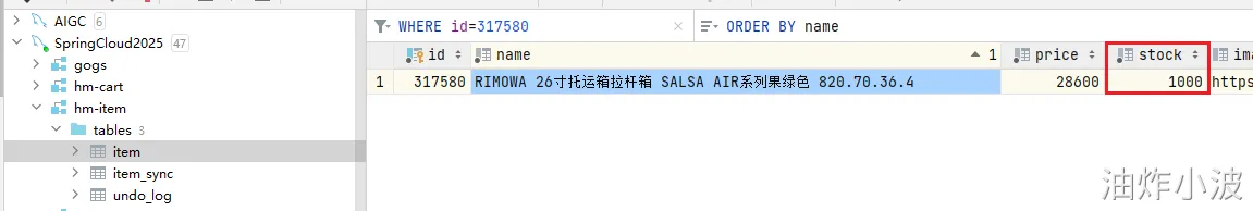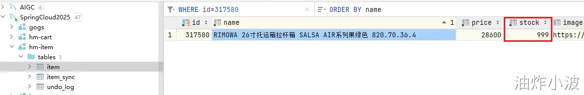 最终抛出异常,查看商品的库存正常扣除,但是订单数据没有创建成功,最终导致数据不一致。