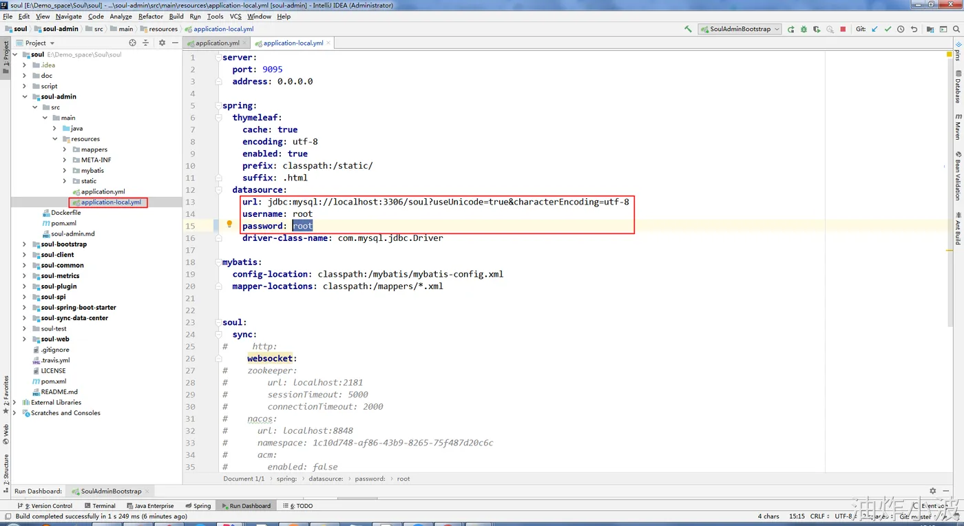 需要现在本地创建一个soul的数据库,如果不想使用这个名字也可以更改默认url配置项中的名称