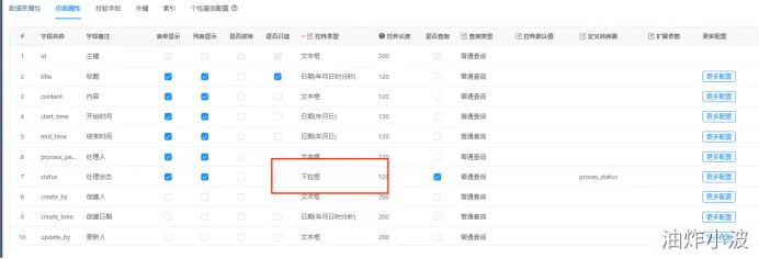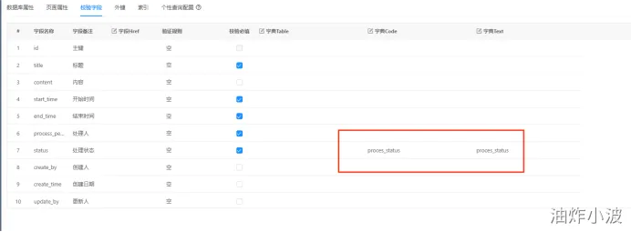 4.在校验字段这为处理状态配置含有对应的下拉框内容的表单随后保存