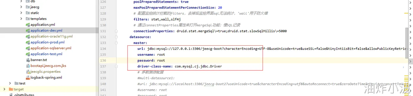 配置文件: jeecg-module-system/jeecg-system-start/src/main/resources/application-dev.yml
