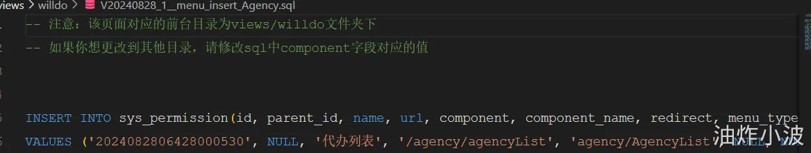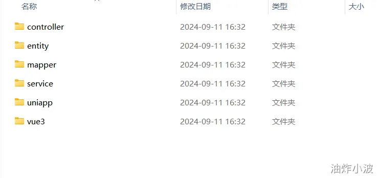 其中vue3是前端代码,uniapp是小程序代码,其余的为后端代码,其中vue3内存放着表sql语句