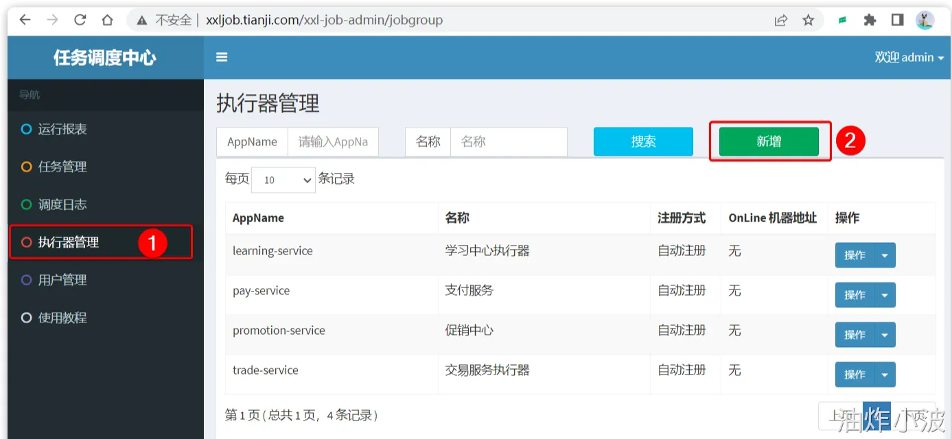 xxl-job不同于spring-task,是需要在控制台配置定时任务的