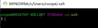 紧接着点选【Git Bash Here】,启动 bash 命令行,可以看到已经在.ssh目录下了。