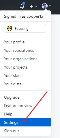 登录成功后,点击右上角个人头像,点击 Settings ,进入设置页面。