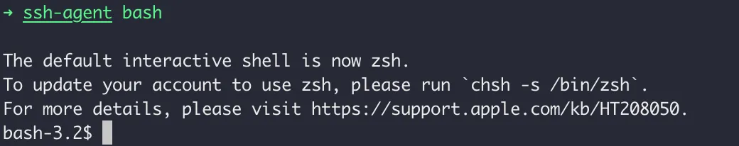 如果是mac用户,可以直接使用ssh-agent bash切换到bash环境。