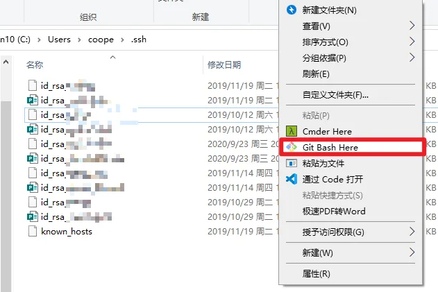 而Windows用户相对麻烦一些,需要在.ssh文件夹中的空白处右键,呼出右键菜单。