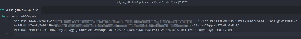 回到 .ssh 目录,用文本编辑器(如Visual Studio Code)的方式打开。