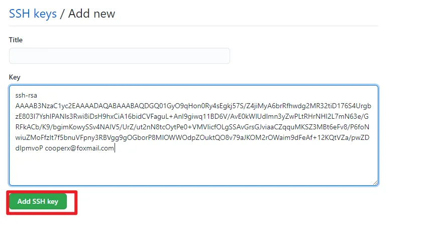 这里为了演示方便,我们点击右上角的【New SSH key】,进入创建页面。
