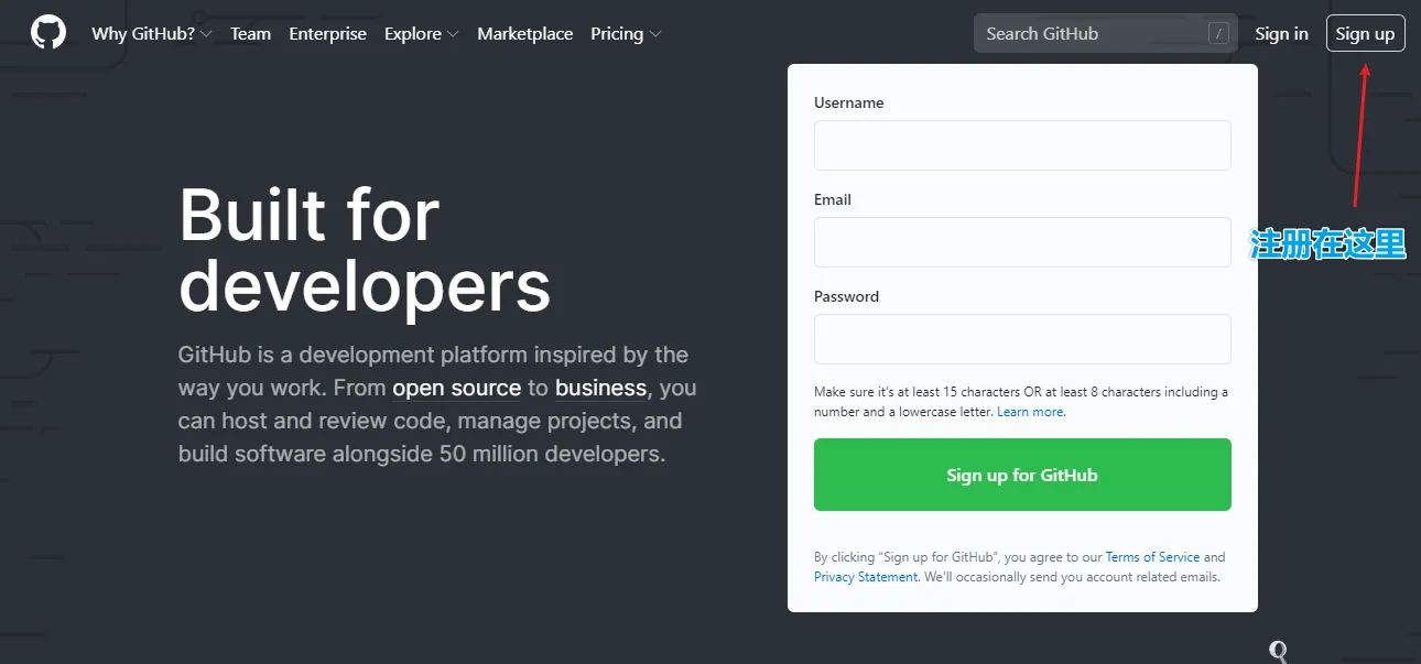 浏览器访问Github官方网站:https://github.com/