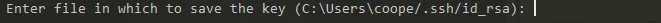 接着是给key单独设置一个文件名,默认是 id_rsa,会保存在系统用户目录下的.ssh文件夹中。