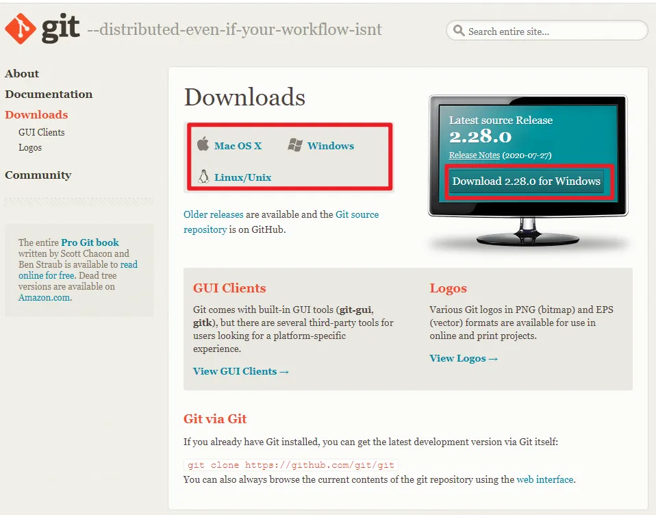 下载前需要根据电脑系统版本,选择合适平台的 Git 版本。