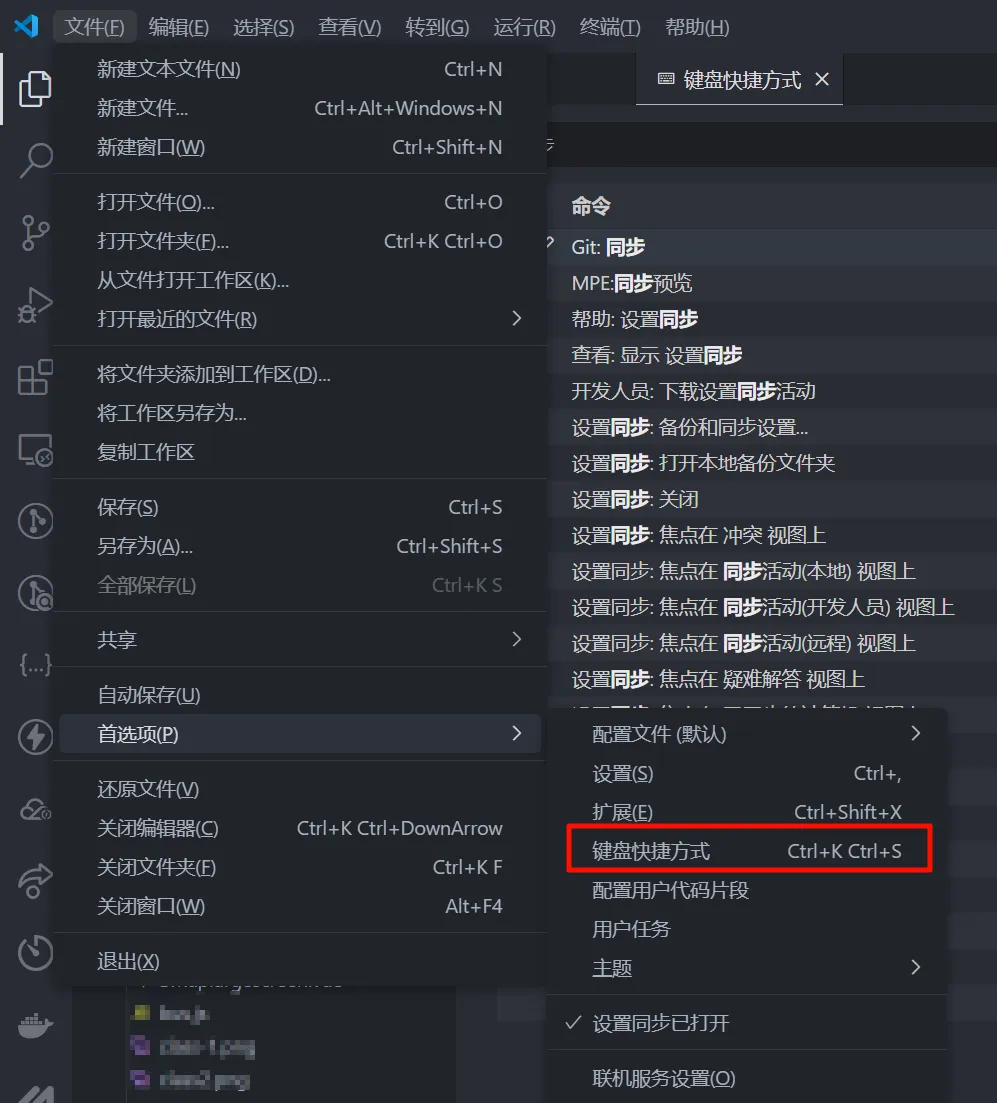 首先你需要打开键盘快捷方式,快捷键是Ctrl+K Ctrl+S。