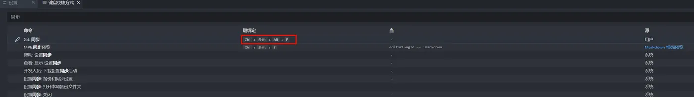 接着搜索同步二字,设置Git:同步的快捷键,双击设置,按完后回车。我这里设置的是Ctrl+Shift+Alt+P。